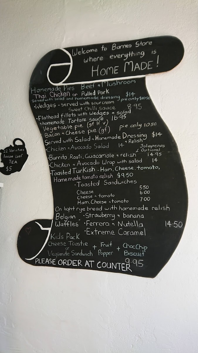 Barnesstore Emporium and Cafe Menu